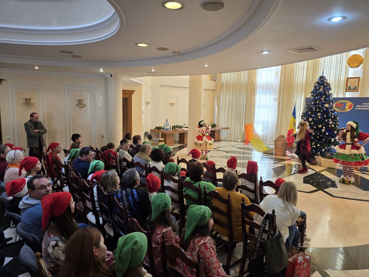 Накануне, 28 декабря 2025 г., подарки от Посольства Беларуси в Молдове получили также дети белорусских общественных организаций Приднестровья, для которых Тираспольской общественной организации «Общество белорусской культуры» и Белорусским культурным центром в Республике Молдова было проведено новогоднее представление.
